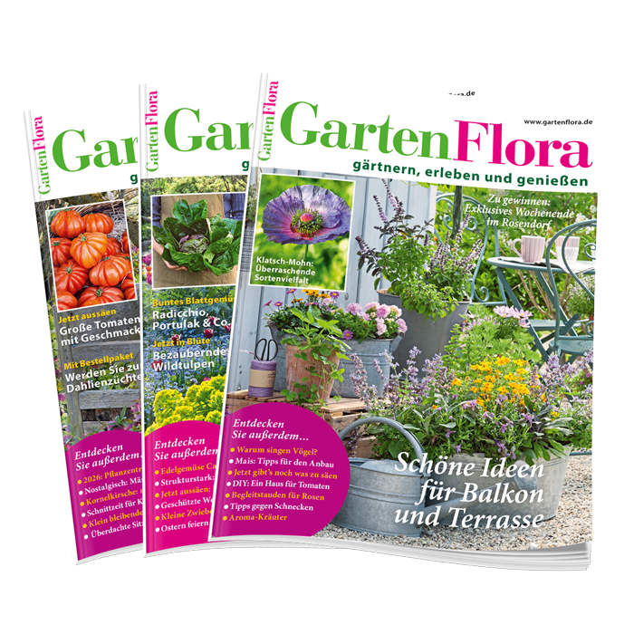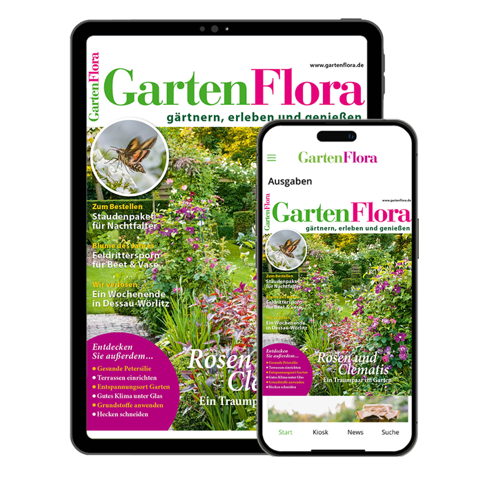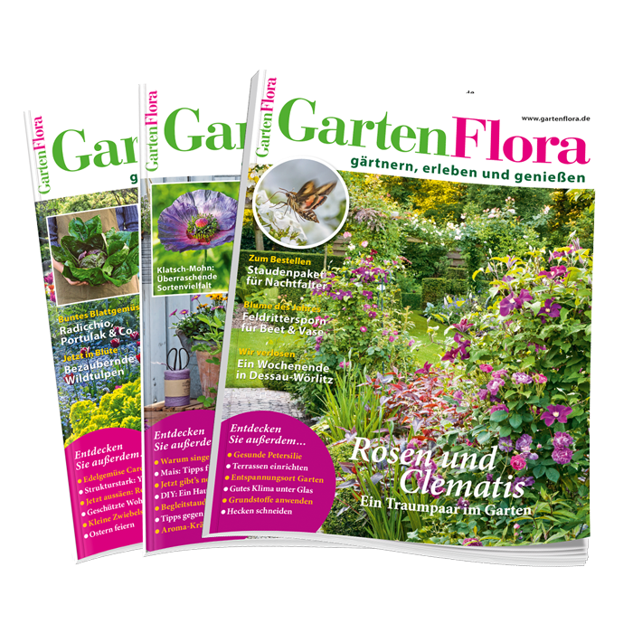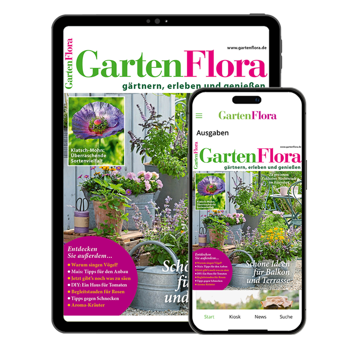Saisonale Gartentipps, Ratschläge für Beet- und Balkonbepflanzung sowie -gestaltung, pfiffige Anleitungen zum Selbermachen, zahlreiche Pflanzenporträts – das und mehr bietet die GartenFlora Print wie Online.